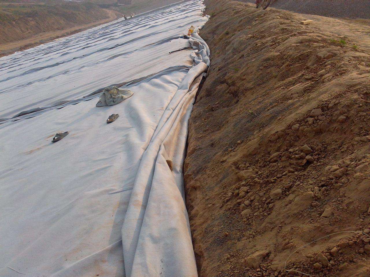 鋪設土工膜前,鋪設人員首先應認真檢查復合土工膜有無破損、空洞、撕裂等缺陷。若存在缺陷,應及時用合格的母材修補,修補范圍應超出破損部位周邊10~20cm。