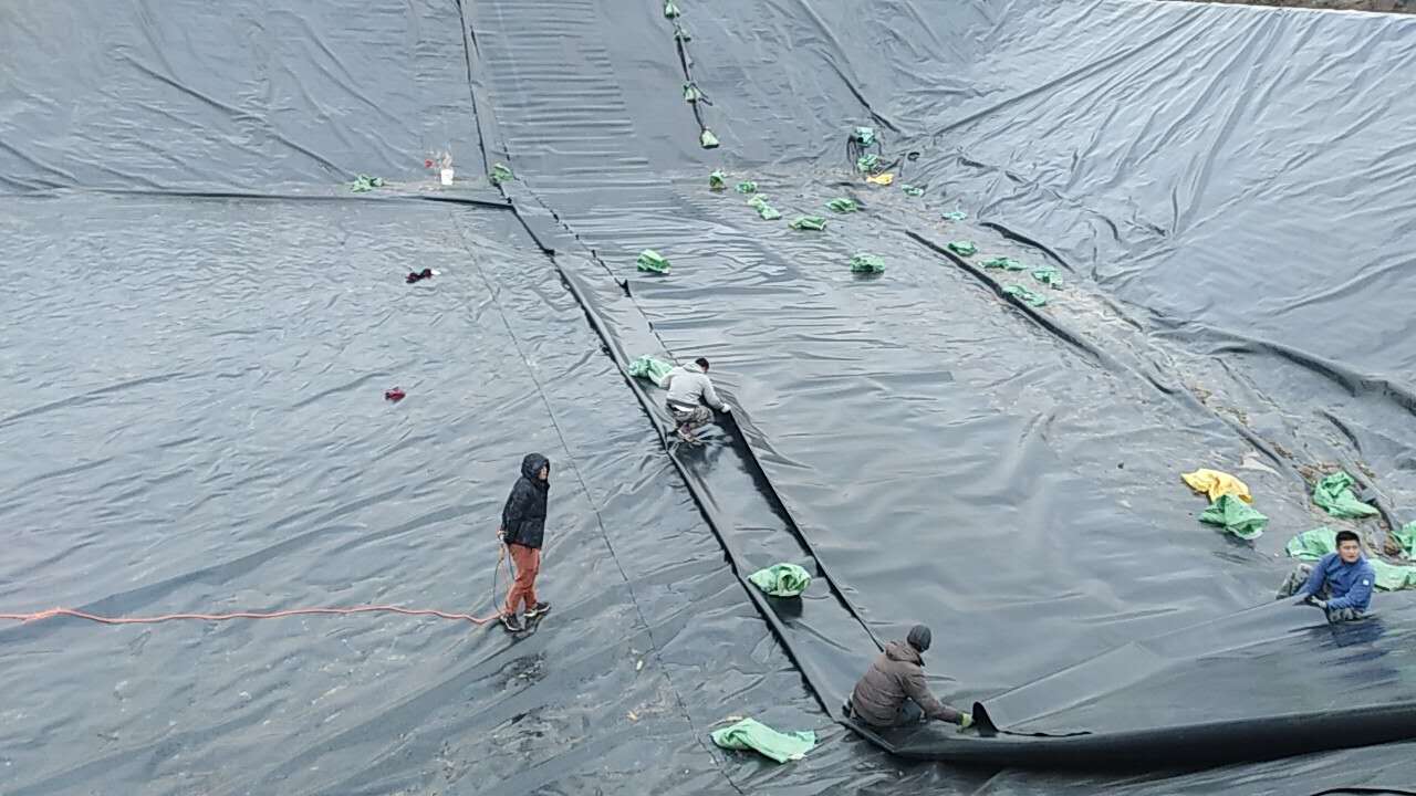 為防止大風(fēng)把覆蓋的土工膜吹開、破壞,土工膜上要設(shè)置重物壓塊,壓塊可因地制宜選擇,目前選擇比較多的為水泥塊、汽車輪胎、土工布袋裝土、大塊卵石等。有的地方垃圾場(chǎng)處在風(fēng)口位置,不僅土工膜上要壓載重物,還要設(shè)置錨固溝,錨固溝斷面尺寸1000×1000mm,間距為平行膜走向30米,溝內(nèi)填滿土后,為防止雨水把溝內(nèi)填土沖走,還要再用寬出錨固溝兩側(cè)各200mm 的土工膜覆蓋在錨固溝上,并應(yīng)與平面土工膜焊接為一體。