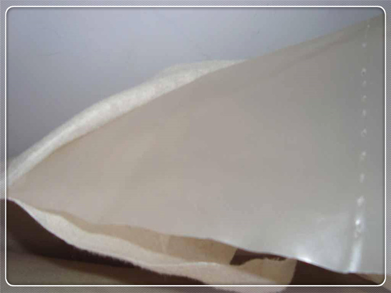 復(fù)合土工膜需要進(jìn)行焊接,其焊接控制參數(shù)以及焊接工藝都必須根據(jù)試驗(yàn)結(jié)果確定,先采用封口機(jī)將下層的土工布縫合,然后再采用熱楔焊機(jī)對夾膜進(jìn)行焊接,焊接的溫度控制在300~350℃,焊機(jī)的行走速度控制在0.8~1.0m/min。焊接的溫度過高會損壞復(fù)合土工膜,焊機(jī)的溫度過低則不能將土工膜進(jìn)行很好的結(jié)合,這都導(dǎo)致焊縫質(zhì)量不合格;焊機(jī)的行走速度過快、過慢也會造成土工膜焊接不符合要求。對于夾膜焊縫,通常采用充氣法進(jìn)行檢查,焊縫滿足要求后用封口機(jī)將上層土工布縫合。
